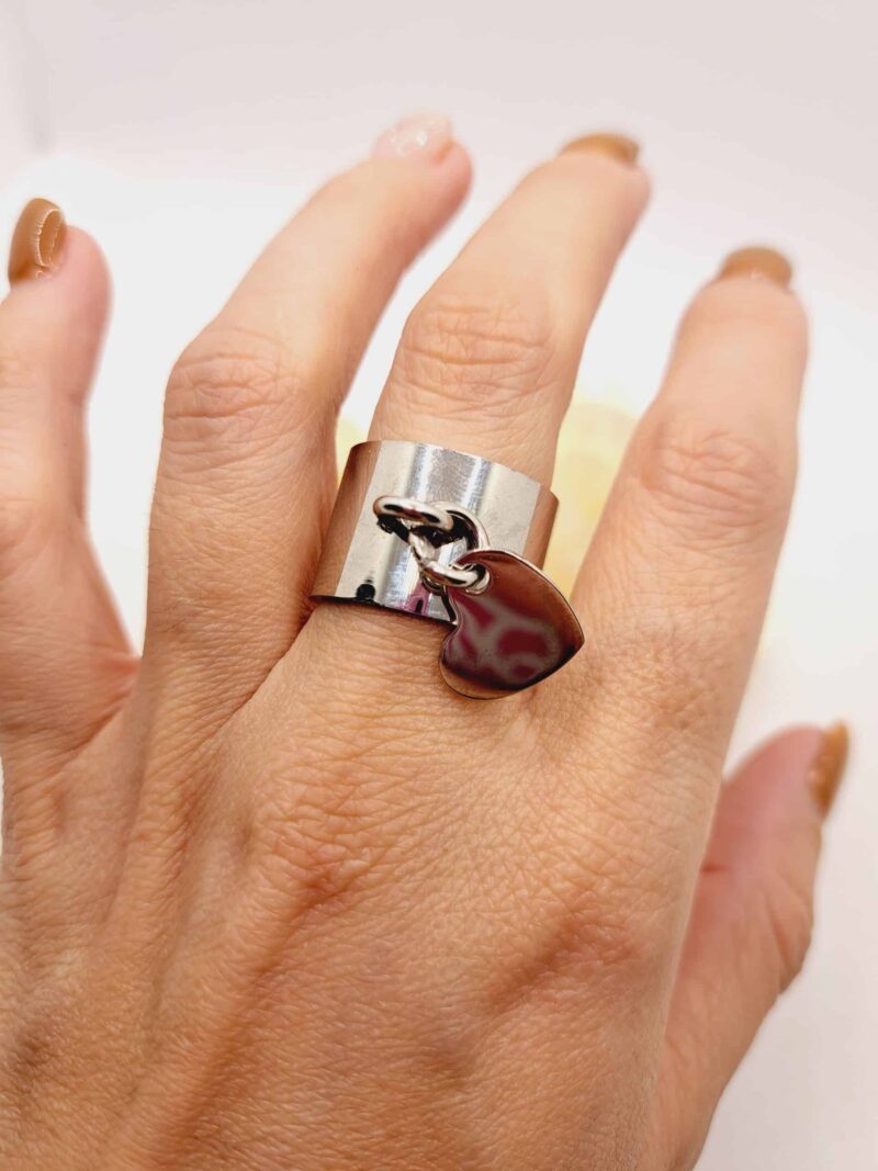 Grosse bague Valentine, en acier inoxydable argenté, légère et originale, pour plus de taille merci de me contacter via le formulaire de contact.