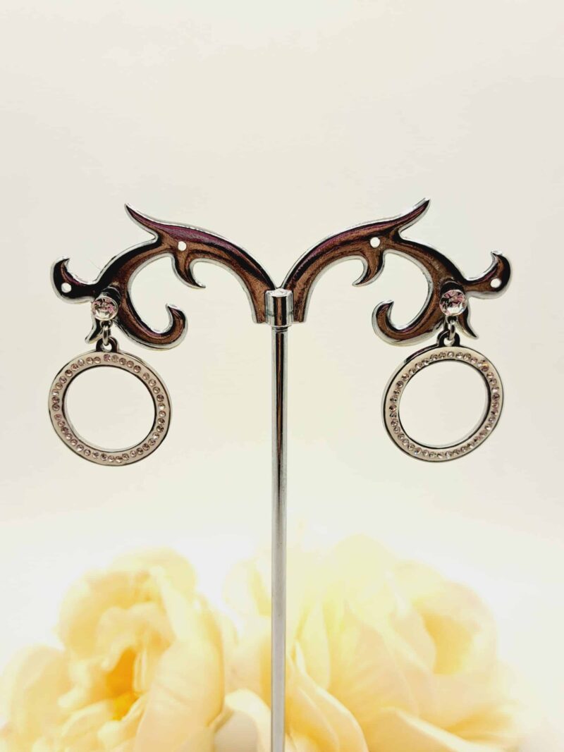Boucles d’oreilles cercles strass en acier inoxydable argenté.