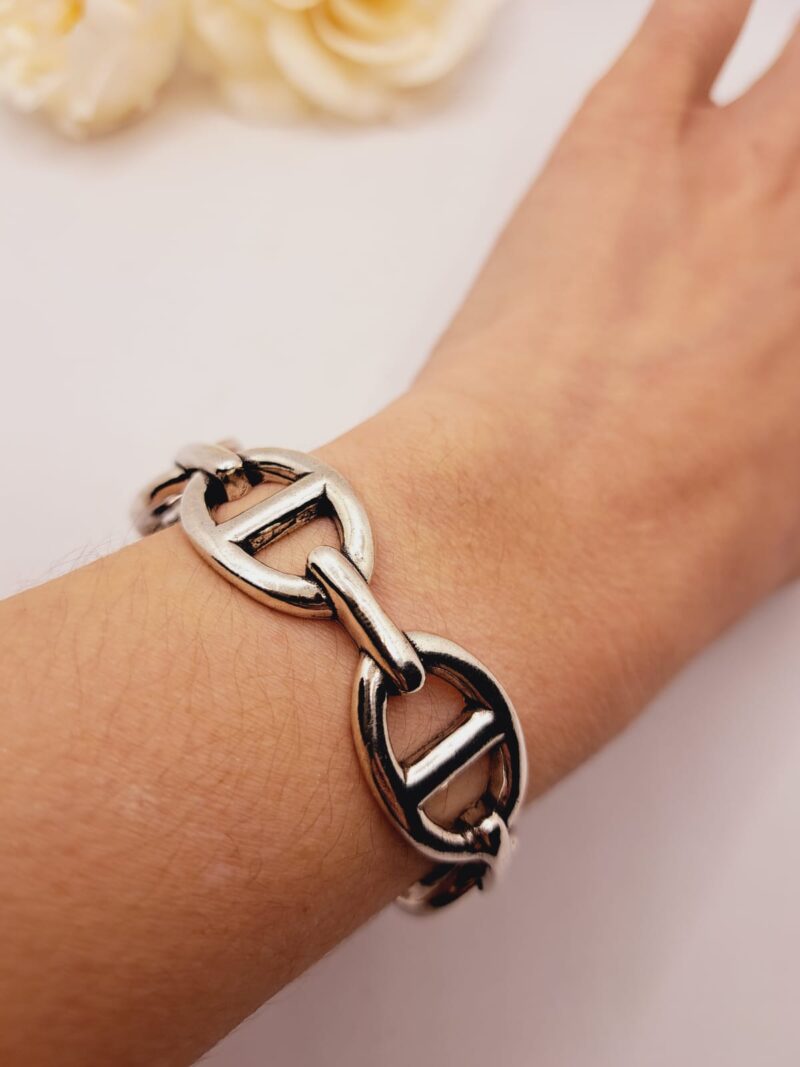 Ajoutez une touche de caractère et de raffinement à votre style avec ce superbe bracelet louise en argent 925 constitué de maillons argentés réglables. Conçu pour captiver les regards, ce bracelet met en avant un design classique revisité avec des maillons larges et des détails soignés. Sa finition argentée lui confère une allure intemporelle, parfaite pour toutes les occasions, du quotidien aux événements plus sophistiqués