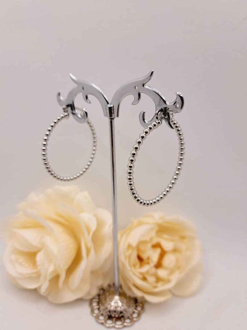 Créole femme en acier inoxydable argenté diamètre 4cm, collection Iris.