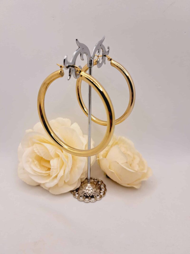 Magnifique créoles épaisse mais légère collection Madonna, en acier inoxydable doré, diamètre de 5cm.