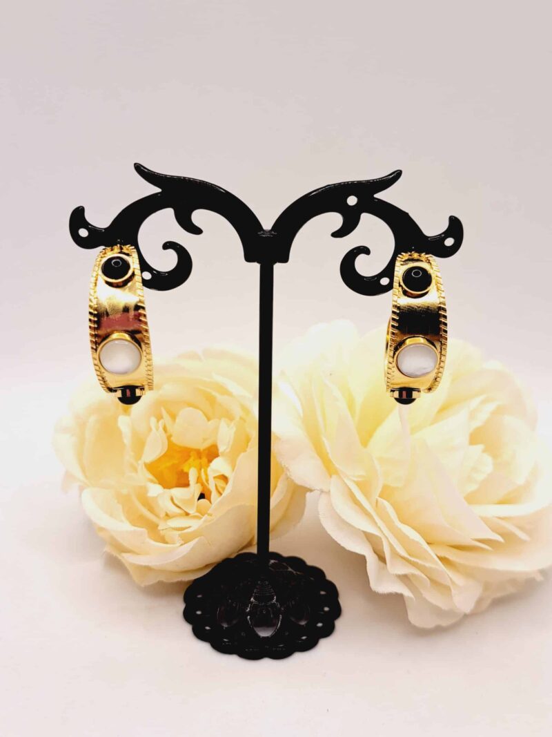 Creoles en acier inoxydable doré avec pierre semi précieuse.