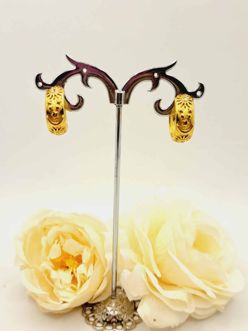 Jolie créoles en acier inoxydable doré motif stellaire diamètre 3 cm, collection Justine.